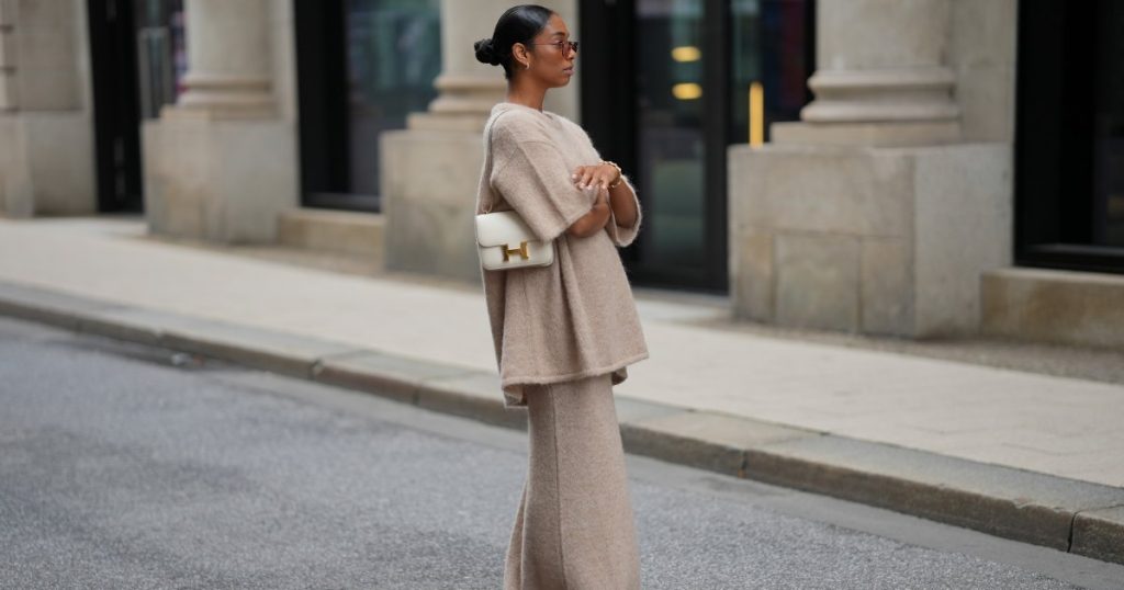 9. كوزي شيك: ناعم ومطاط وأنيق بشكل مدهش، هذا الثنائي المضلع يبدو وكأنه ملابس مريحة ولكنه يبدو جاهزًا لخطط العشاء. تعمل السترة القصيرة على موازنة التنورة الضيقة الأنيقة بشكل مثالي.
