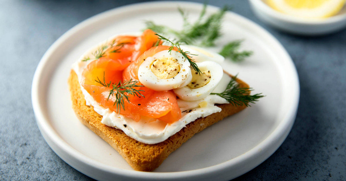 ضعي فوق الخبز المحمص كل من سمك السلمون والبيض وستحصلين على وجبة إفطار غنية بالبيوتين!