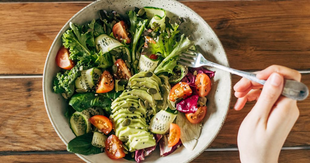 يقول ويليامز: “يساهم النظام الغذائي أيضًا في تناول الماء يوميًا، وخاصة الفواكه والخضروات ومنتجات الألبان”. وتذكر أن الحليب خالي الدسم يحتوي على أكثر من 90% من الماء، لذا فإن شربه يساهم في ترطيب الجسم. يقول ويليامز: “وحتى الأطعمة مثل الفول والمعكرونة والمأكولات البحرية وصدور الدجاج تحتوي على 60٪ من الماء”. وبعبارة أخرى، فإن تناول نظام غذائي متوازن مع الكثير من الأطعمة الطازجة يساعدك على تحقيق أهدافك اليومية من المياه.
