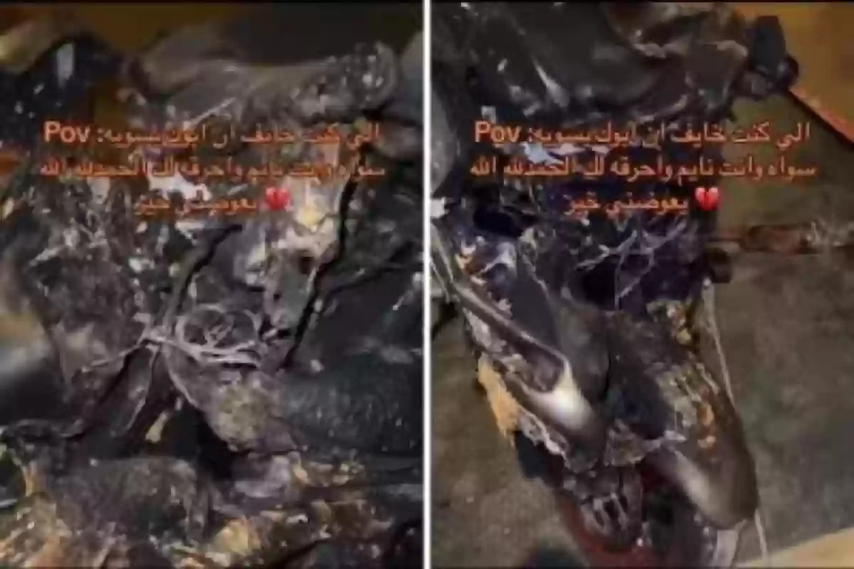 وعلق صاحب الدباب على مقطع الفيديو وقال: “اللي كنت خايف أن أبوك يسويه، سواه وأنت نايم وأحرقه لك، الحمد لله الله يعوضني خير”.