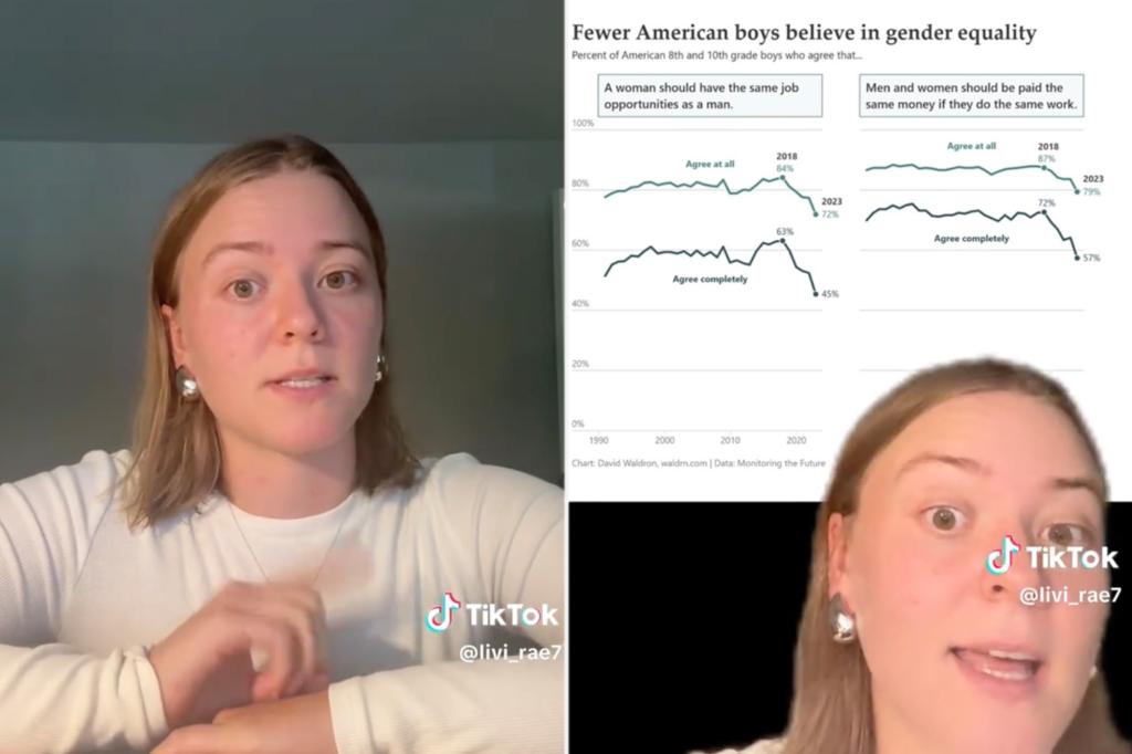 وفي الوقت نفسه ، قام الكاتب ديفيد والدرون بتحليل البيانات من مراقبة الدراسة المستقبلية ووجد انخفاضًا مماثلًا. بين عامي 2018 و 2023 ، يجب أن يكون عدد الأولاد في الصف الثامن والعاشر الذين اتفقوا تمامًا على النساء نفس فرص العمل حيث انخفض الرجال من 63 في المائة إلى 45 في المائة. الاعتقاد في الأجر المتساوي استغرق أيضا الغوص.