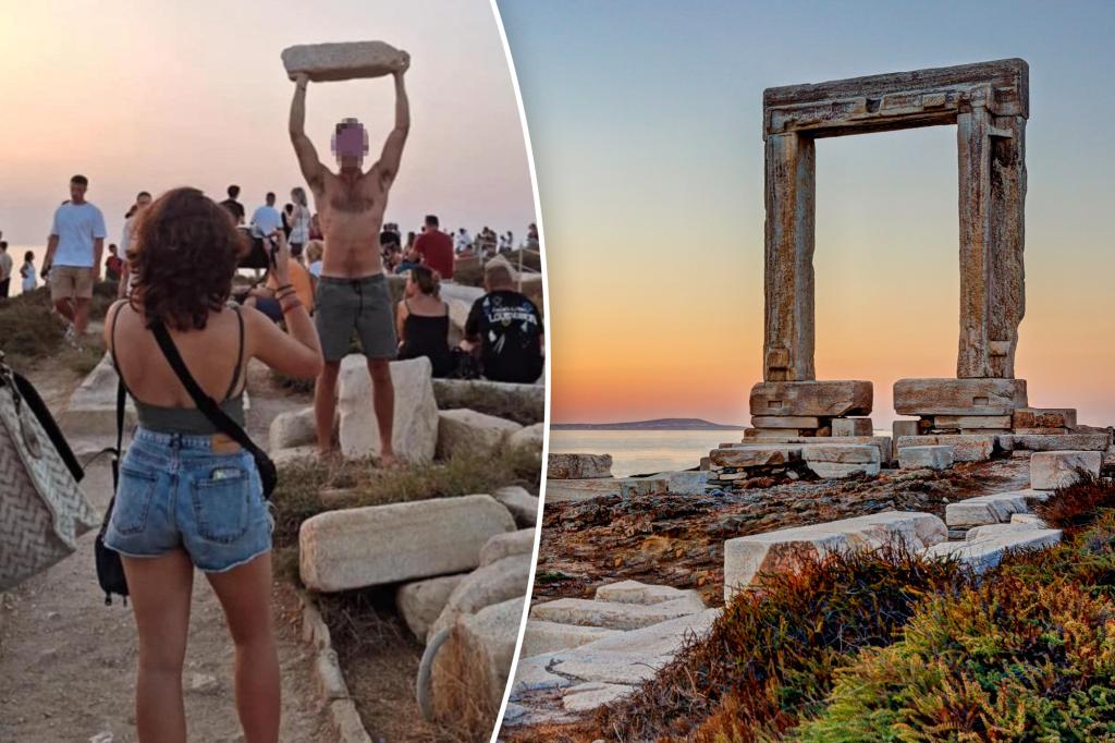 تم تصنيف سائح “غير محترم” بعد رفع جزء قديم من الرخام لالتقاط صور في ناكسوس ، اليونان ، كما يظهر في منشور على Facebook.