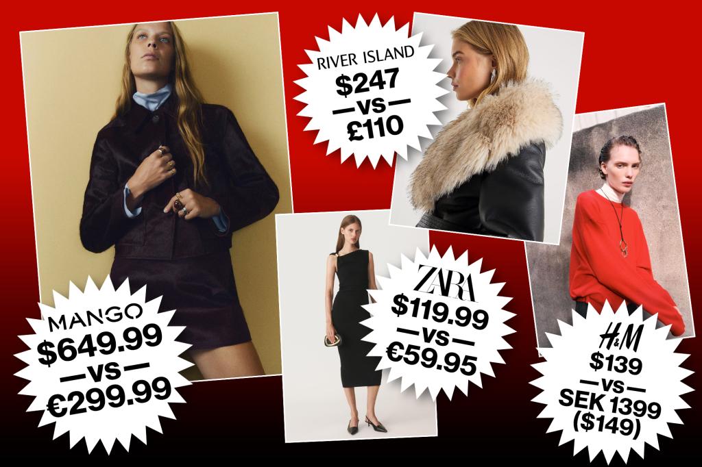 يمكن شراء فستان أسود صغير مع تفاصيل معدنية ذهبية على الأكمام من Zara مقابل 59.99 يورو فقط في إسبانيا – أي ما يعادل 70 دولارًا. ولسوء الحظ، يقفز السعر إلى 119 دولارًا في الولايات المتحدة، أي بفارق 67%.
