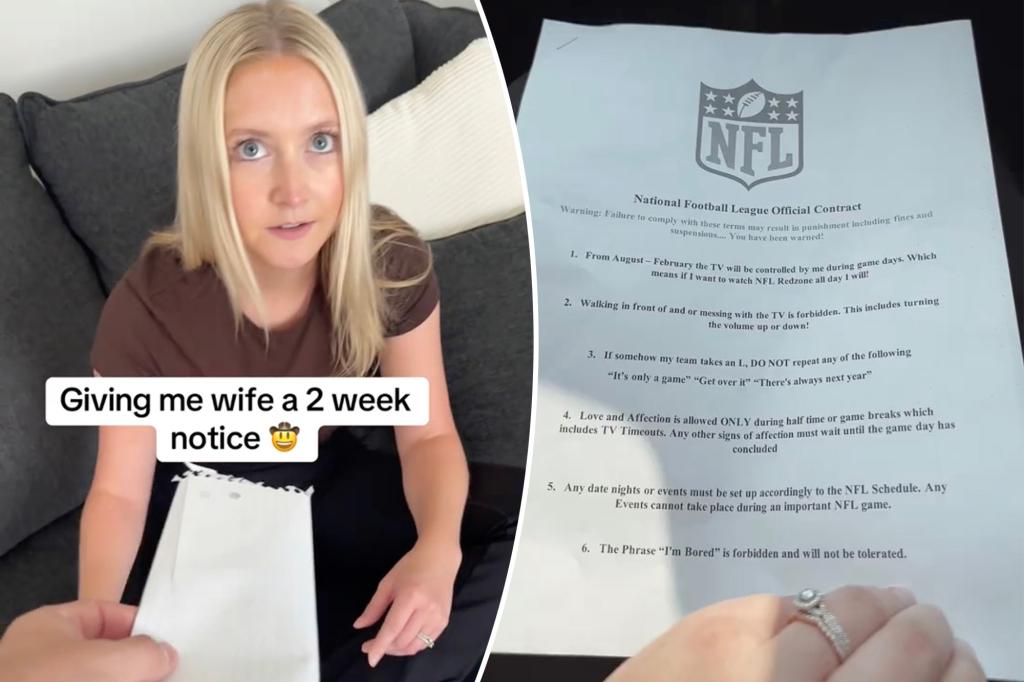انتقلت امرأة إلى وسائل التواصل الاجتماعي لمشاركة صورة لرسالة حصلت عليها من صديقها حيث من المقرر أن يبدأ موسم اتحاد كرة القدم الأميركي في 7 سبتمبر في الولايات المتحدة مع المباراة الافتتاحية بين دالاس كاوبويز وفيلادلفيا إيجلز.