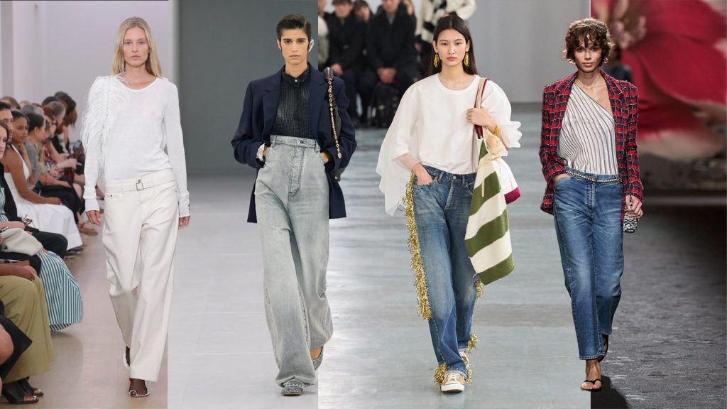 تميل اتجاهات الدنيم إلى البقاء لفترة أطول من موضة الملابس المتوسطة، ولهذا السبب عندما يعيد المصممون النظر في الصور الظلية وأسلوبهم بشكل جماعي، نلاحظ ذلك. من أجل مجموعة غوتشي لربيع وصيف 2024 التي أطلقها ساباتو دي سارنو لأول مرة، أخذنا في رحلة إلى العقد الأول من القرن الحادي والعشرين، حيث قام بقص الجينز الأزرق شبه المصمم مع قمصان الحفلات الأنيقة – وهو مظهر يذكرنا بعصر ماضي. وأظهرت بروينزا شولر طرقاً جديدة لارتداء اللون الأبيض بالكامل، في حين رفع جوناثان أندرسون الخصر إلى أبعاد غير متوقعة.