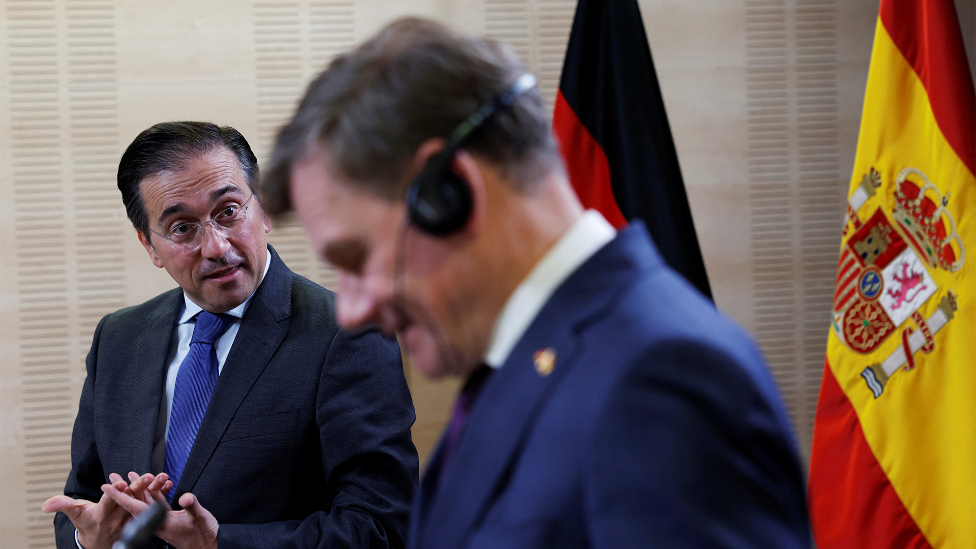 اتفق وزيرا خارجية إسبانيا وألمانيا، خلال مؤتمر صحفي مشترك في مدريد، على ضرورة التوصل لحل الدولتين ومنع تهجير الفلسطينيين من غزة، مع المطالبة بإدخال المساعدات الإنسانية بشكل عاجل لإنهاء الأزمة الإنسانية المتفاقمة في القطاع.