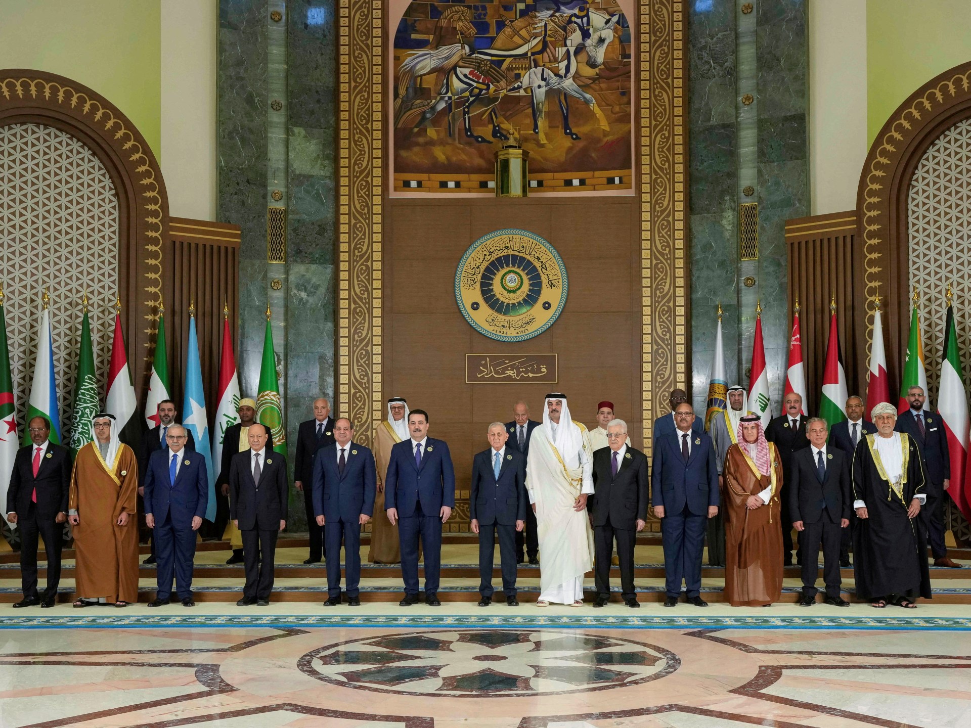 حث البيان الختامي للقمة العربية التي استضافتها العاصمة العراقية بغداد -اليوم السبت- المجتمع الدولي للضغط من أجل وقف إراقة الدماء في غزة، وأكد الرفض القاطع لتهجير الشعب الفلسطيني.