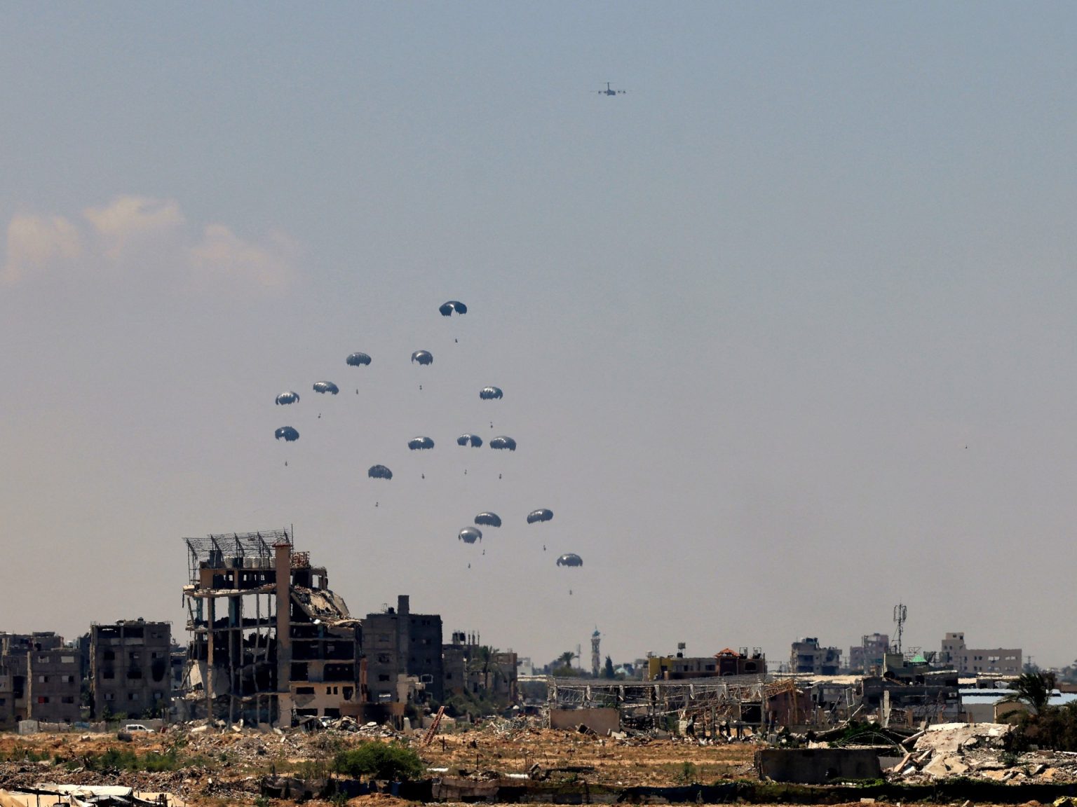 وأسقطت القوات المسلحة الألمانية مجددا شحنات من الغذاء والدواء فوق قطاع غزة الأحد. بالإضافة إلى ذلك، دخلت حوالي 1200 شاحنة محملة بمساعدات إنسانية إلى القطاع المحاصر الأسبوع الماضي، حسب بيانات إسرائيلية.