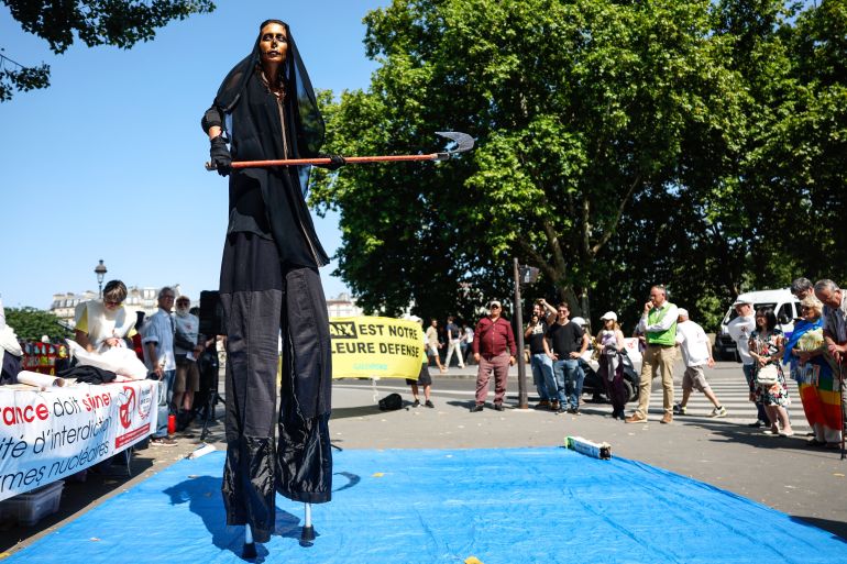 تجمعٍ تضامني مع ضحايا هيروشيما وناغازاكي، في العاصمة الفرنسية باريس (الأوروبية)