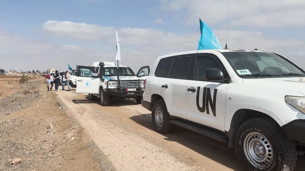 وتضم القافلة لأول مرة موظفي الأمم المتحدة للقاءالمجتمعات المحلية والاستماع للمتضررين، وذلك تطبيقا لاتفاق وقف إطلاق النار الذي ينص على إدخال المساعدات الإنسانية.