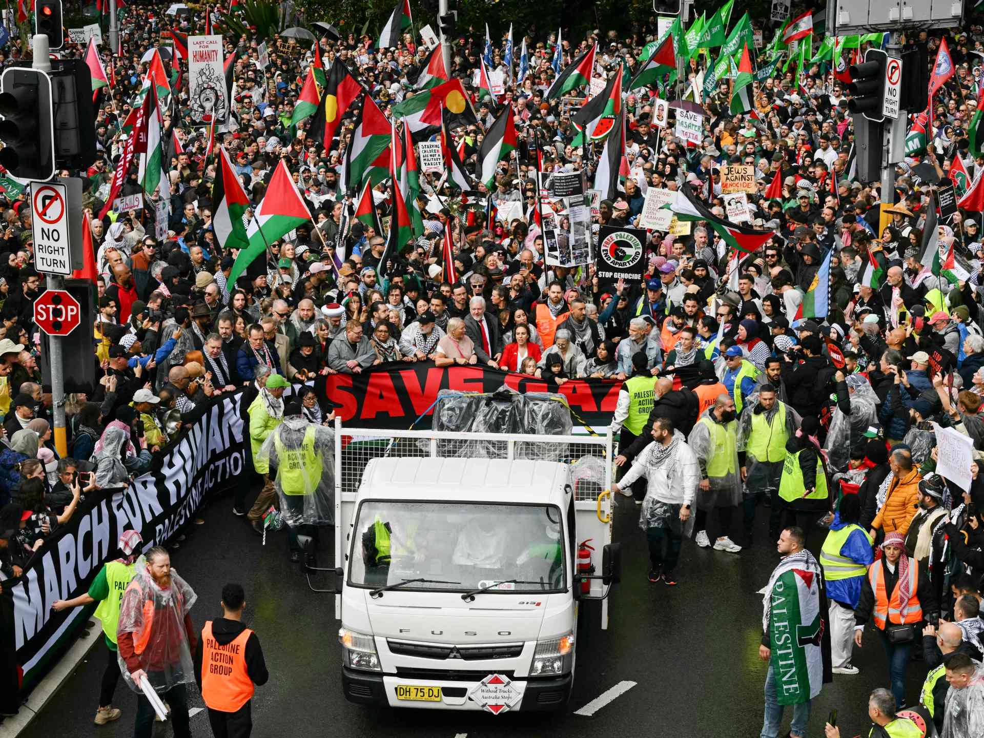 وفي أستراليا، خرج الآلاف من عدة مدن وساروا عبر جسر هاربور الشهير في مدينة سيدني، في تظاهرة حاشدة تطالب بوقف الحرب الإسرائيلية بغزة، وفتح المعابر وإدخال المساعدات.