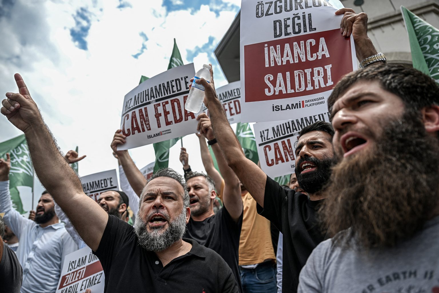 في الأثناء، تظاهر المئات في إسطنبول ضد مجلة “ليمان” المعارضة، والتي تقف وراء الرسوم، وهتفوا مرددين “ليمان.. لا تنسوا شارلي إيبدو”.