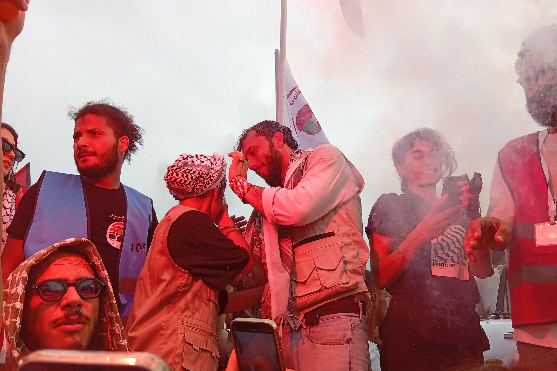 من جانبه، رفع الناشط البرازيلي أفيلا، الذي اعتقل سابقًا لدى قوات الاحتلال، شعارات ضد إسرائيل، واعتبر أن هذا التحرك يمثل “أكبر مهمة إنسانية على الإطلاق”، موجها شكره لتونس على دعمها للقضية الفلسطينية.