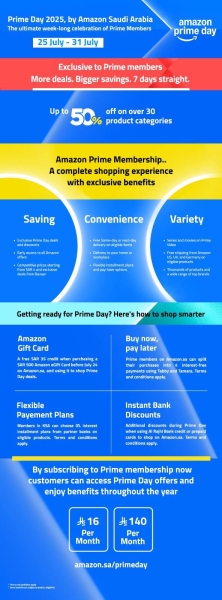 يمكن للأعضاء الرئيسيين في جميع أنحاء المملكة العربية السعودية أن يجعلوا تجربة التسوق في اليوم الأسهل من خلال تنزيل تطبيق Amazon لتصفح وتسوق والتأكد من عدم تفويت صفقة أو عن طريق التسوق مباشرة على الموقع www.amazon.sa/primeday.