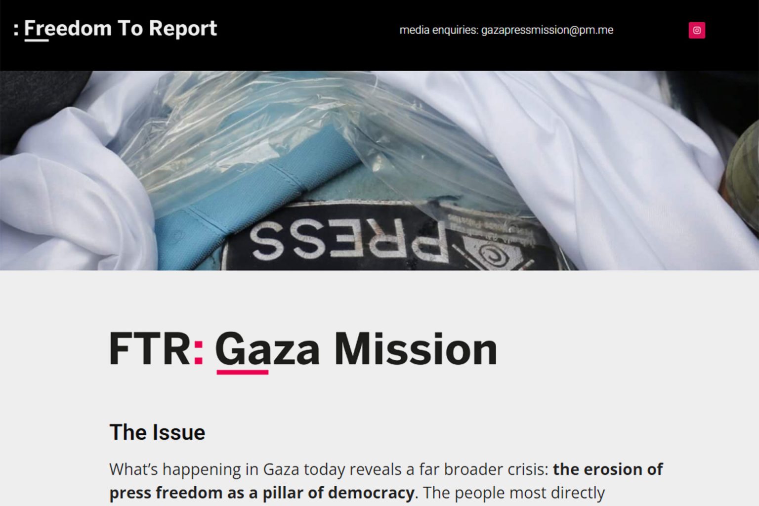 وطالب الصحفيون المشاركون في المبادرة باحترام الوضع المحمي للصحفيين بموجب القانون الدولي، بما في ذلك اتفاقيات جنيف، كما أشاروا إلى أن ما يحدث في غزة يكشف عن أزمة أوسع نطاقا تتمثل بتآكل حرية الصحافة كركيزة للديمقراطية.