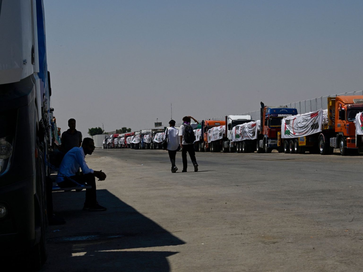 ونقلت وكالة الصحافة الفرنسية -التي شاركت في جولة صحفية منظمة في المكان أمس الاثنين- عن محمود الشيخ سائق شاحنة محملة بالدقيق قوله إنه ينتظر السماح له بالعبور منذ قرابة أسبوعين، في ظل درجات حرارة خانقة.