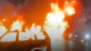 عائلة كاملة تفحمت.. اشتعال سيارة على طريق السويس
