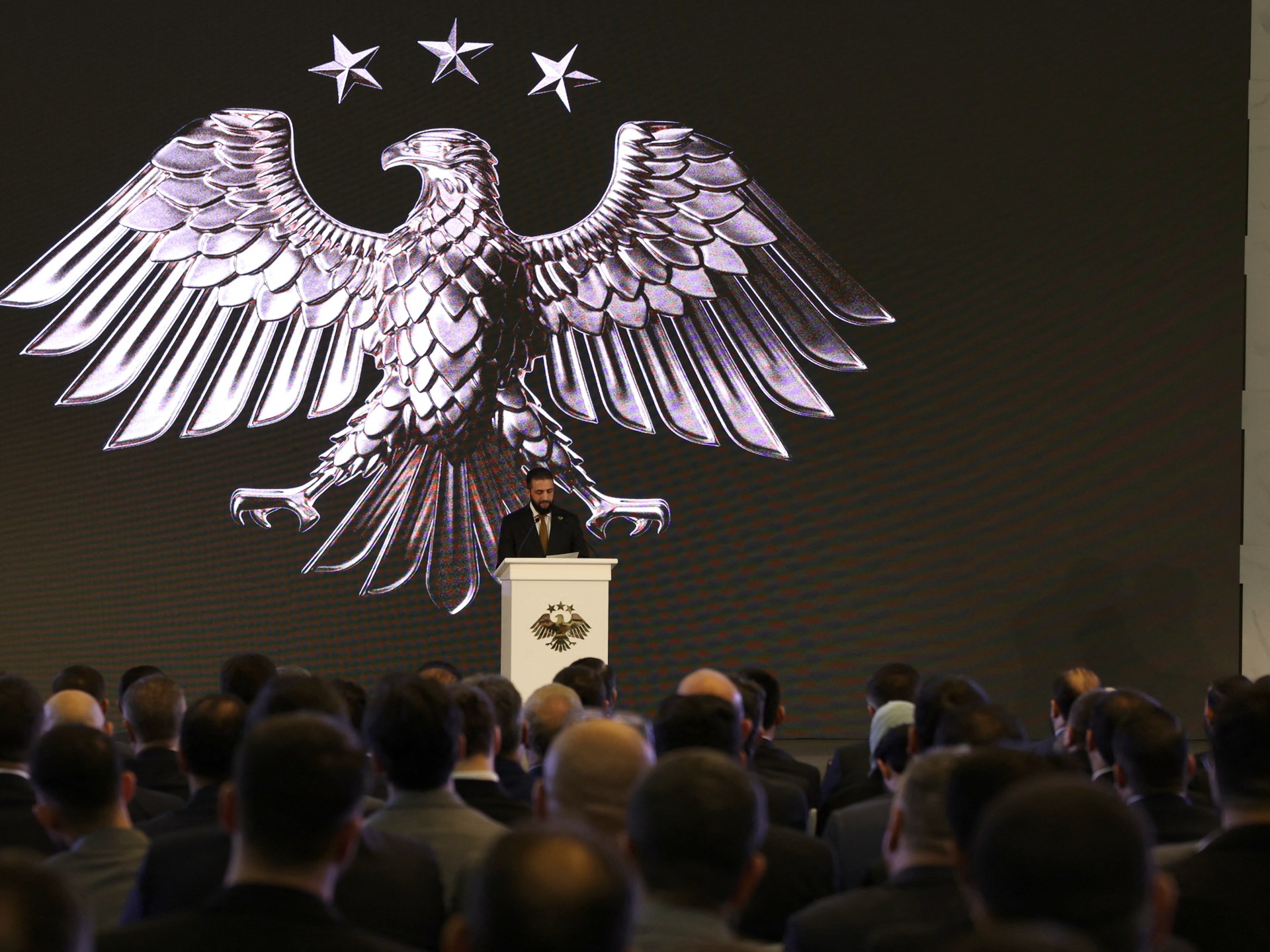 أطلقت الرئاسة السورية -مساء أمس الخميس- الشكل النهائي للهوية البصرية الجديدة للدولة (الشعار الجديد) ورافقت ذلك احتفالات أعلن خلالها الرئيس أحمد الشرع أن سوريا “لا تقبل التجزئة”.
