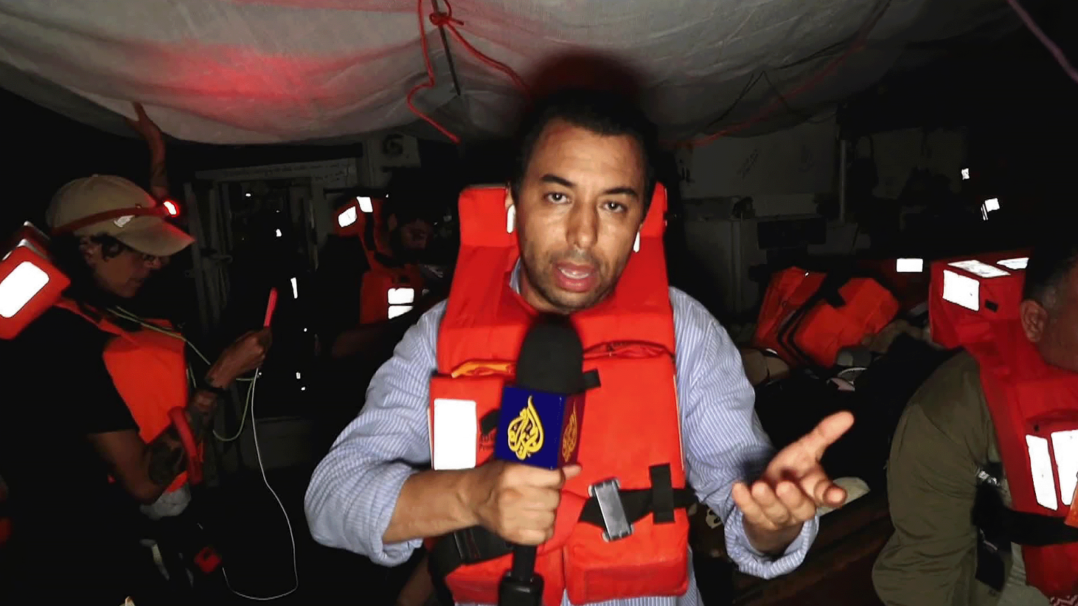 وأكد البقالي من على متن السفينة أن قاربين إسرائيليين اقتربا من السفينة ليلًا بسرعة كبيرة ورفضا الرد على طاقمها عندما أطلقَ نداء استفسار لمعرفة هويتهما.