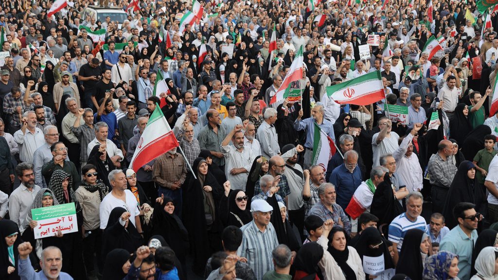 احتشد الإيرانيون في ساحة الثورة بطهران خلال أول يوم من وقف إطلاق النار مع إسرائيل، مؤكدين صمودهم في مواجهة الحرب الإسرائيلية.