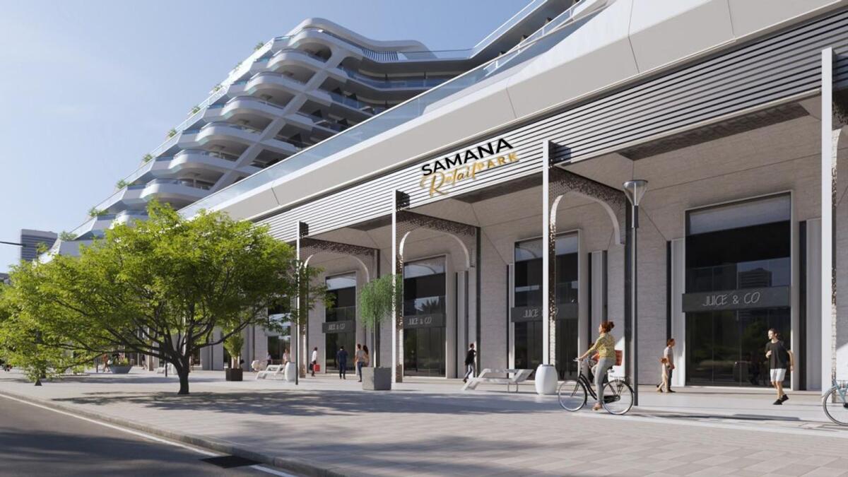 انطباع فني عن سمانا ريتيل بارك، وهي منطقة تسوق بقيمة 150 مليون درهم في أرجان. – الصورة المقدمة