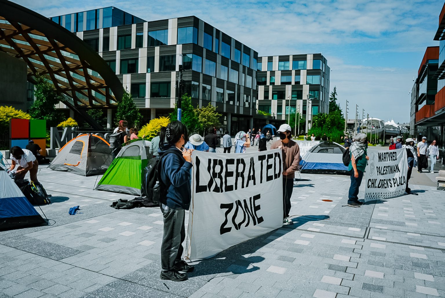 وذكرت شبكة “سي إن بي سي” الأميركية أن شركة مايكروسوفت طلبت من الشرطة إبعاد المحتجين الذين اقتحموا مقرها بولاية واشنطن.