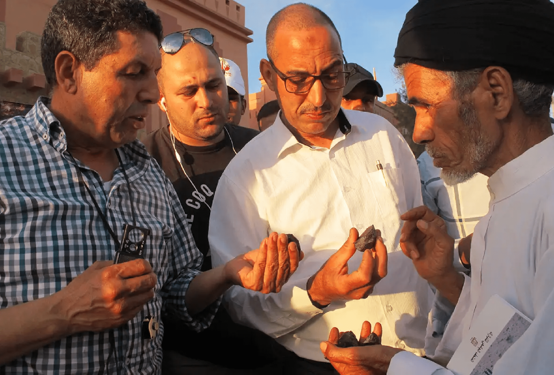 ويقدم فيلم “الباحثون عن النيازك” نموذجا لنشاط الرحل المنقبين عن هذه الأحجار النادرة في مناطق صحراوية شاسعة بالمغرب، وهو ما ثمنه الخبير المغربي في علم النيازك والأستاذ بكلية العلوم بجامعة ابن زهر بأغادير عبد الرحمان إبهي الذي رافق طاقم التصوير في جولة مع الرحل للبحث عن النيازك، وقال إن دور هؤلاء الرحل أساسي في إيجاد النيازك، إذ يساعدون في تحديد موقعها بدقة وسط الأحجار والرمال، كما تلقوا تدريبات من أجل التعرف مبدئيا على الأحجار النيزكية خلال عملهم اليومي في ممارسة الرعي.