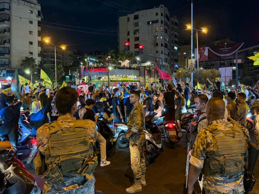 وفي بلدة الغازية قضاء الزهراني جنوبي البلاد، ذكرت الوكالة أن بعض الشبان تجولوا عبر الدراجات النارية رافعين شعارات مؤيدة لحزب الله ورافضة للقرار الحكومي بشأن حصر السلاح بيد الدولة.