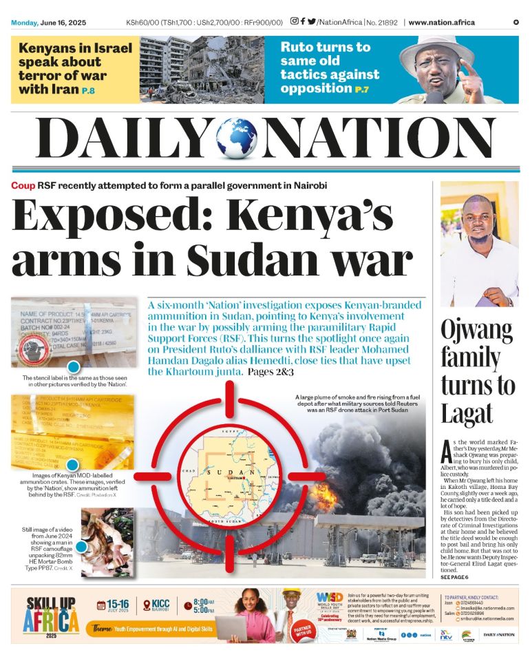 صحيفة دايلي نايشن الكينية تخصص موضوعها الأبرز للحديث عن التحقيق بشأن تمويل كينيا لقوات الدعم السريع بالسودان (مواقع التواصل الاجتماعي)