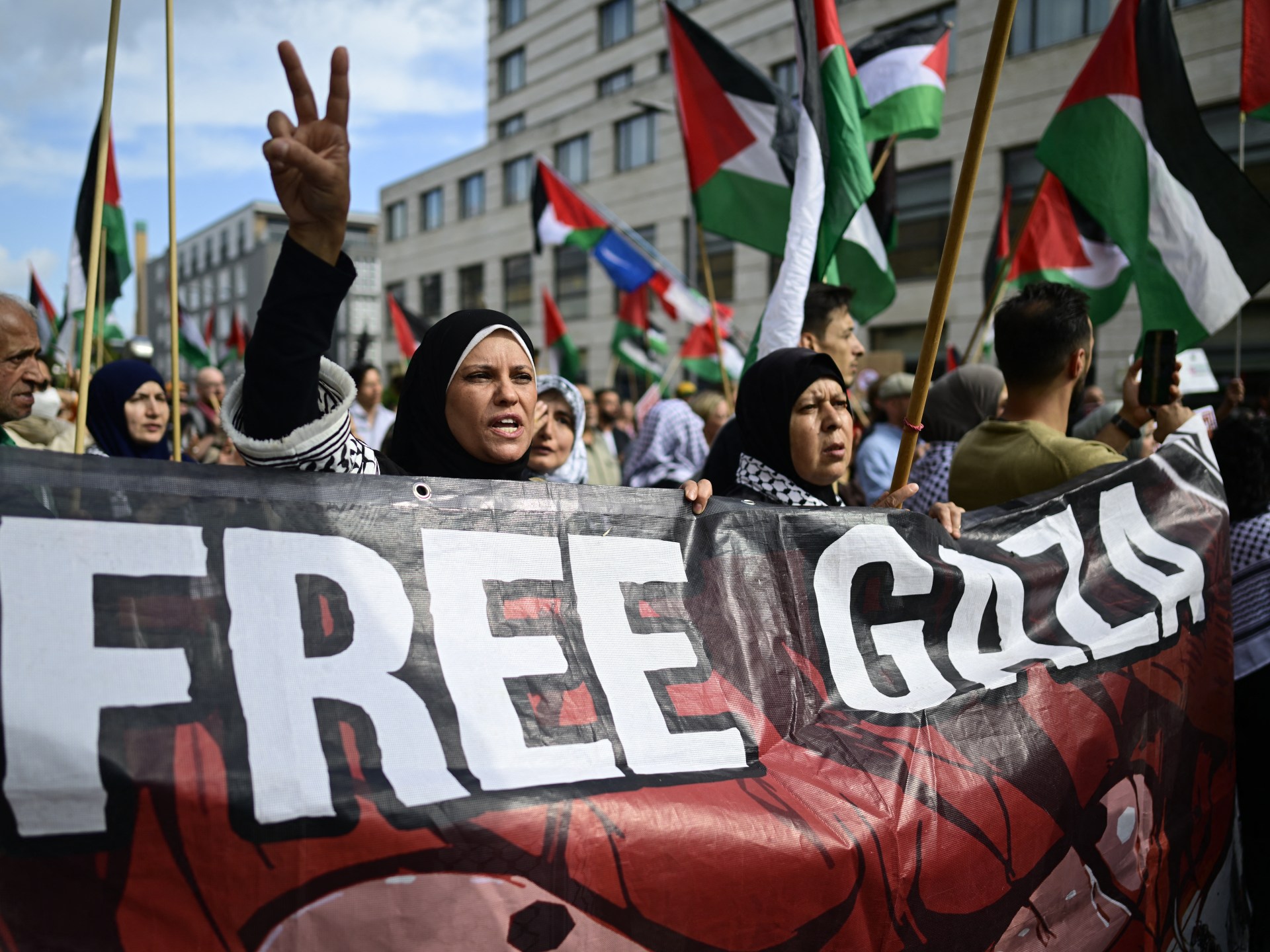 استخدمت الشرطة الألمانية في العاصمة برلين العنف ضد وقفة داعمة لفلسطين ومنددة بحرب الإبادة والتجويع التي تشنها إسرائيل على قطاع غزة، واعتقلت عددًا كبيرًا من المشاركين.