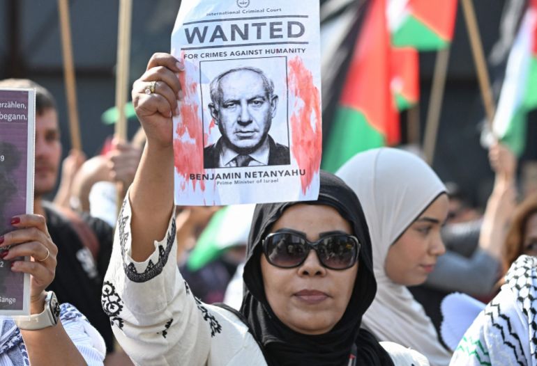 وذكّر بعض المتضامنين مع فلسطين بأن رئيس الوزراء الإسرائيلي بنيامين نتنياهو مطلوب للمحكمة الجنائية الدولية بتهم ارتكاب إبادة جماعية في غزة.