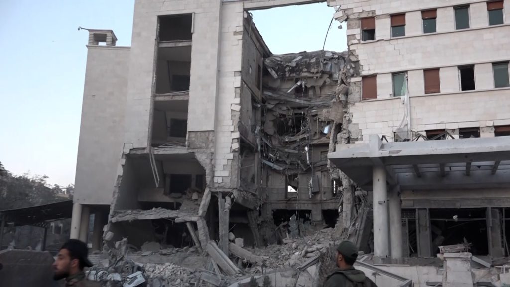 رصدت كاميرا الجزيرة آثار الدمار الذي لحق بمبنى هيئة الأركان العامة وسط العاصمة السورية، بعد تعرضه لغارات جوية إسرائيلية مكثفة، مما أدى إلى تدمير أجزاء واسعة منه.