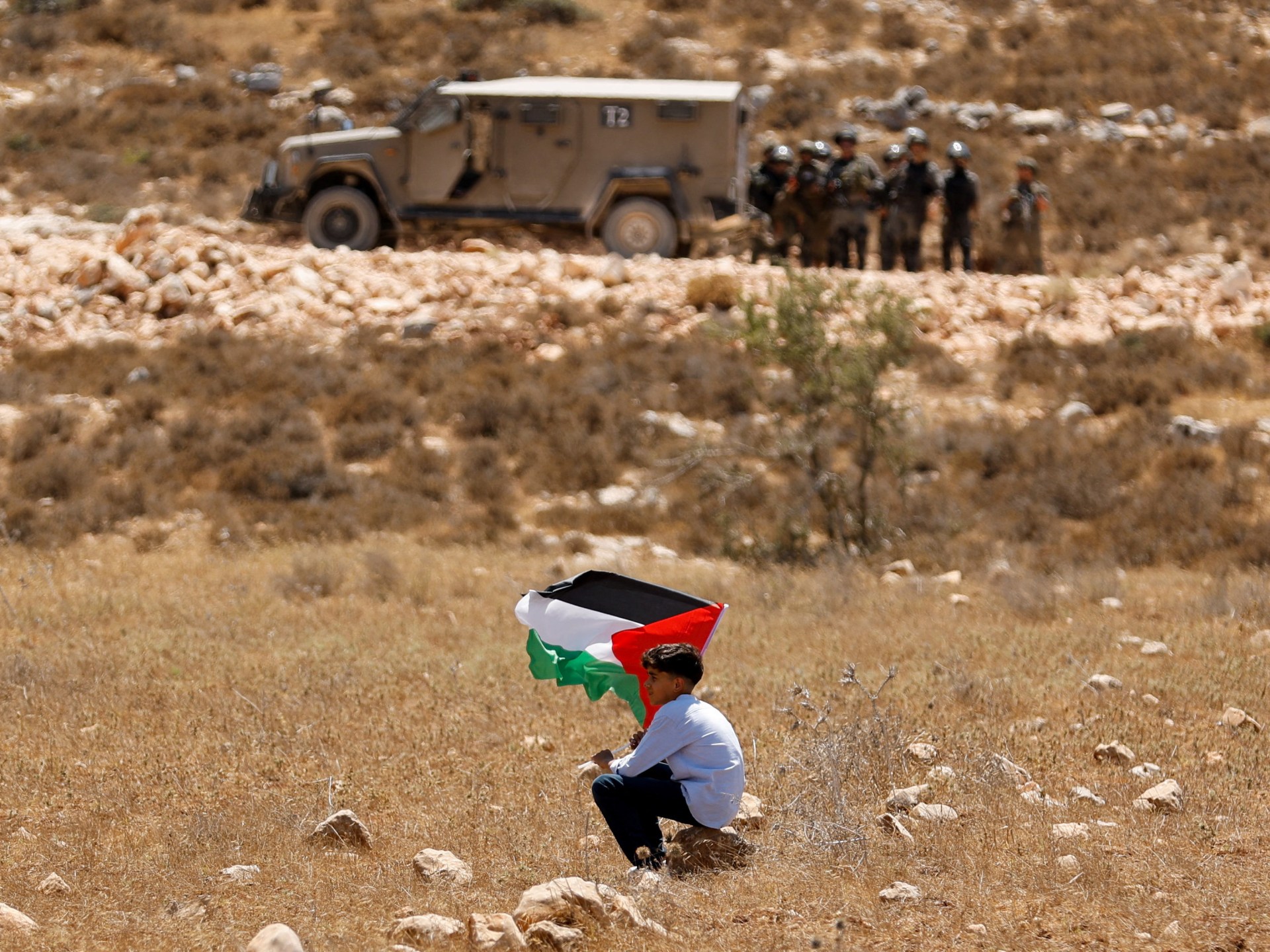قوات الاحتلال قمعت الفلسطينيين المحتجين على مصادرة أراضيهم (رويترز)