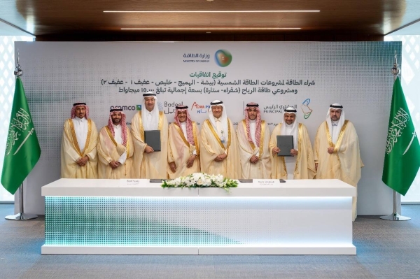 RIYADH – وقعت المملكة العربية السعودية سبعة اتفاقيات جديدة لشراء الكهرباء من مشاريع الطاقة الشمسية وطاقة الرياح بسعة إجمالية قدرها 15000 ميجاوات ، مدعومة بالاستثمارات التي تقدر بمبلغ 31 مليار دولار (8.3 مليار دولار).