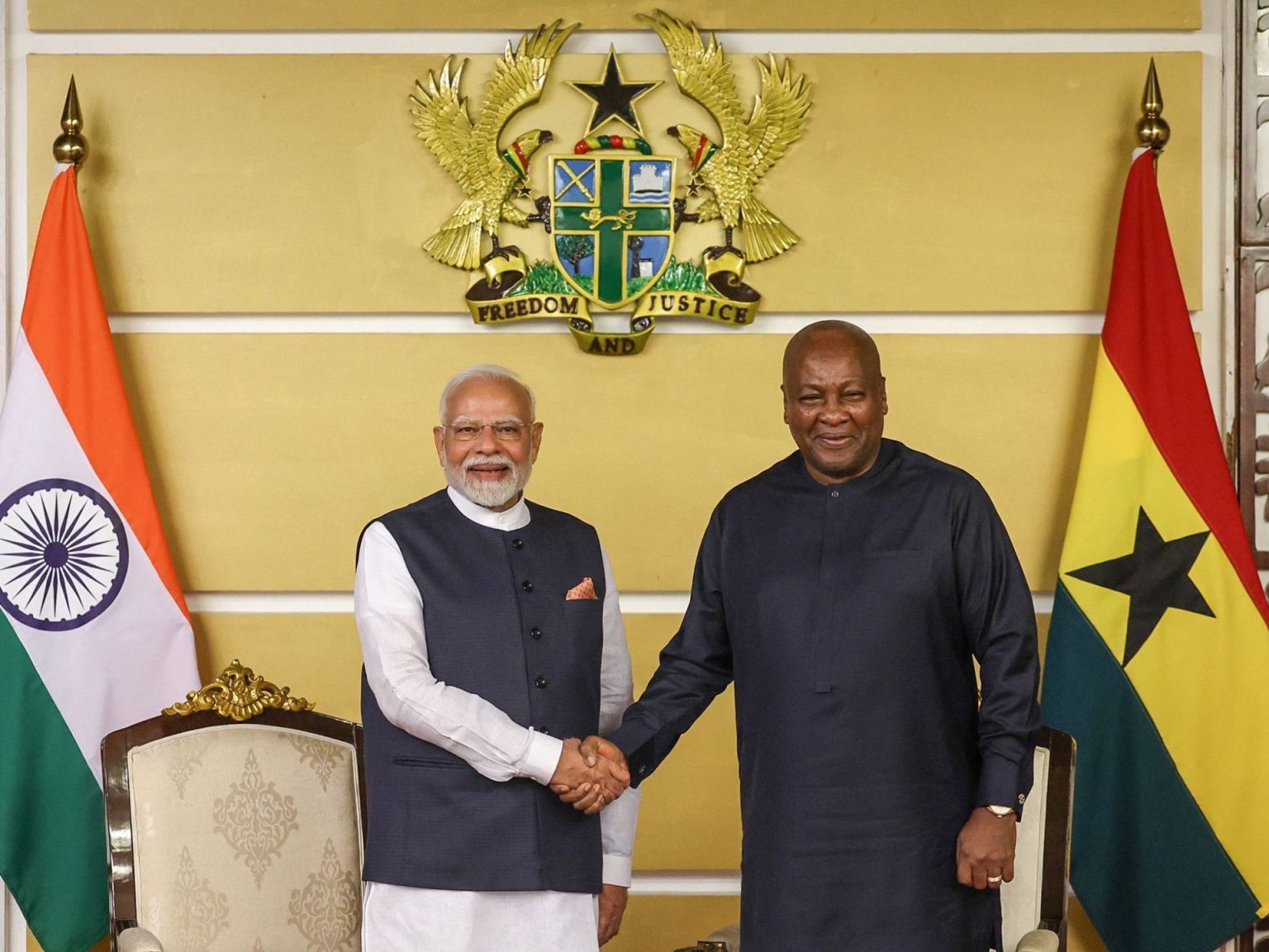 ومُنح في هذه الزيارة، رئيس الوزراء الهندي أعلى وسام مدني في غانا، من الرئيس الغاني جون دراماني ماهاما، وهو “وسام نجم غانا من رتبة ضابط”، تقديرا لـ”قيادته العالمية المؤثرة وحكمته السياسية المتميزة”.