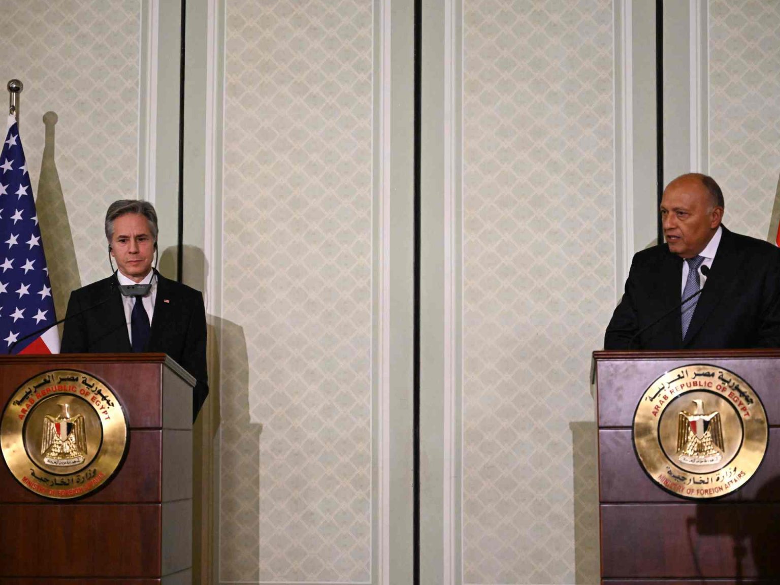 جاء ذلك في مؤتمر صحفي لبلينكن مع نظيره المصري سامح شكري، على هامش اجتماع وزاري عربي في القاهرة ضم وزراء خارجية فلسطين ومصر والسعودية وقطر والأردن والإمارات العربية المتحدة.