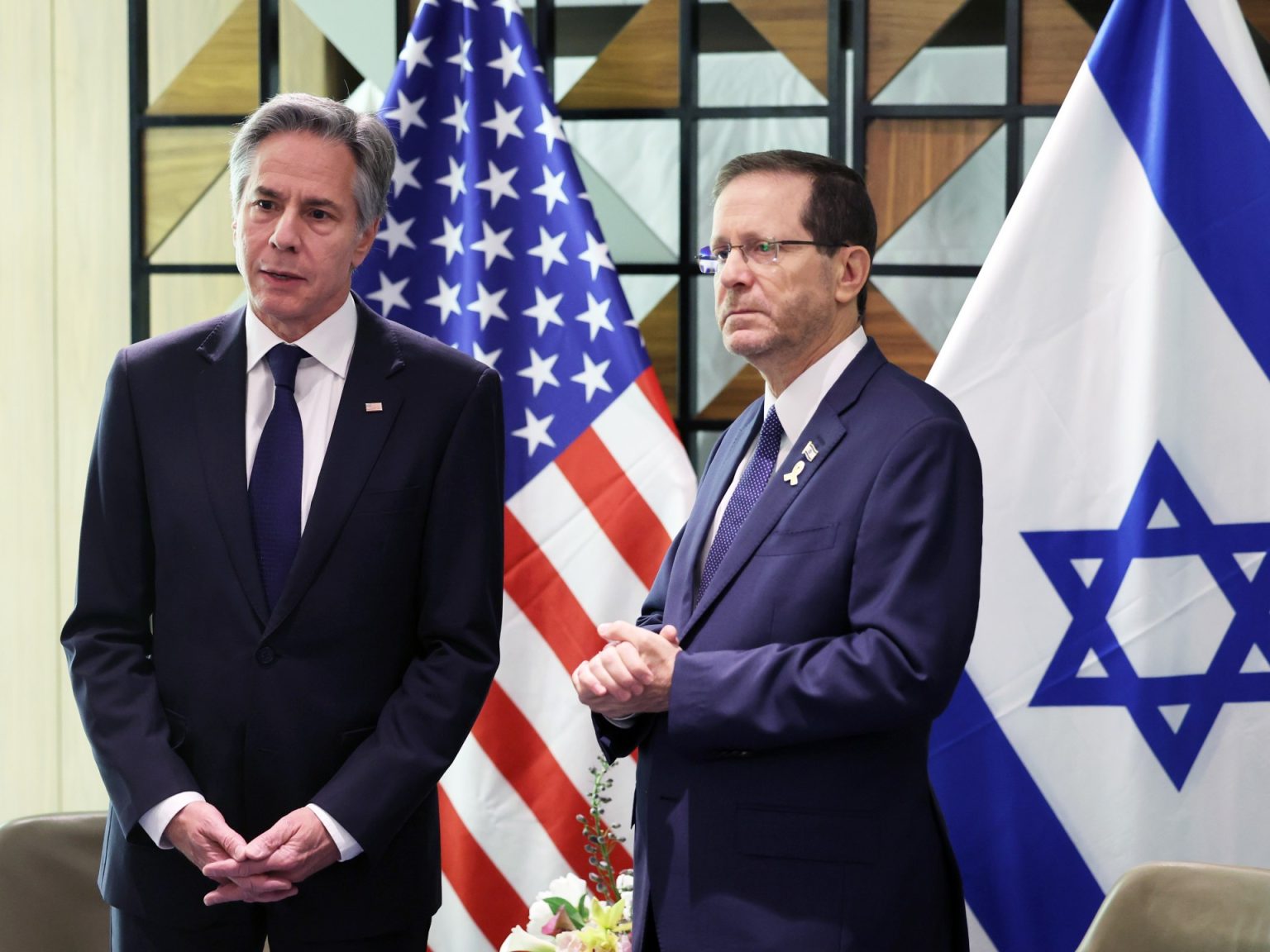 وقال بلينكن خلال اجتماعه بالرئيس الإسرائيلي إسحاق هرتسوغ بتل أبيب إن الولايات المتحدة مصممة على التوصل لاتفاق بين إسرائيل وحماس الآن يضمن وقف إطلاق النار وإعادة من وصفهم بالمخطوفين إلى ديارهم.