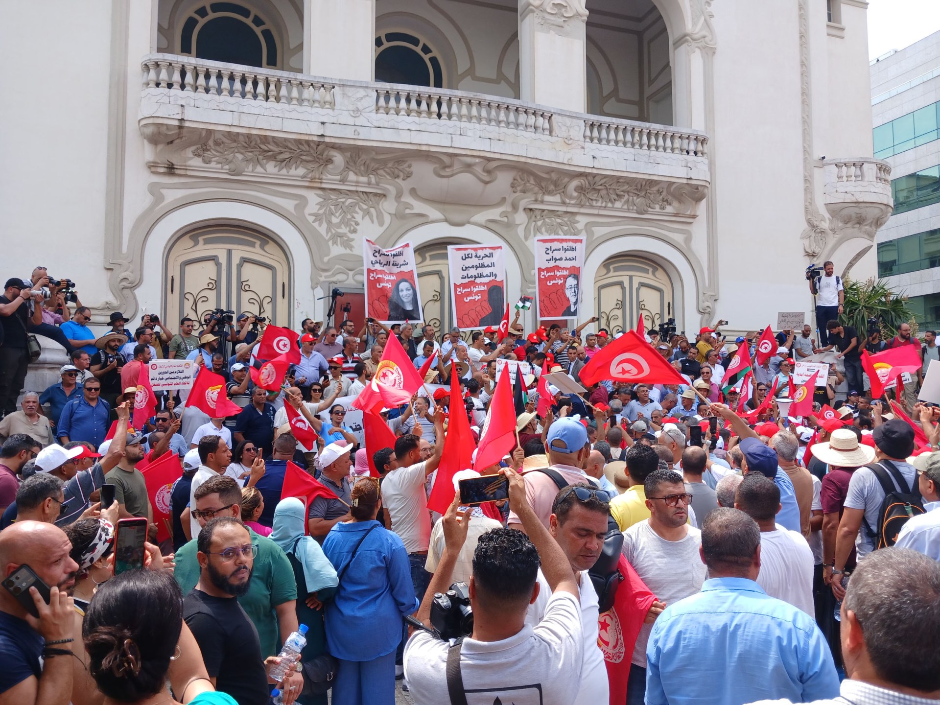 تجمع النقابيون في تونس العاصمة للدفاع عن الاتحاد العام التونسي للشغل، حيث أكد الأمين العام نور الدين الطبوبي أن المنظمة تعرضت لهجوم همجي سيبقى في تاريخها.