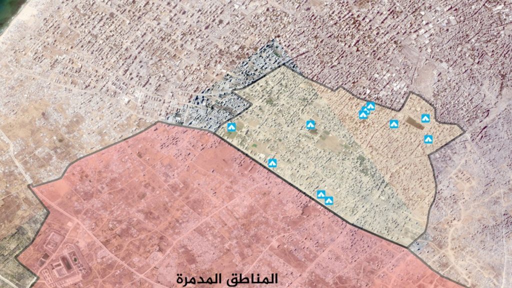 وتُظهر الخرائط أن مراكز الإيواء في الزيتون داخل الحدود الإدارية تتمركز في منطقة شمال الحي، حيث تكدست الخيام والملاجئ في بقعة ضيقة، لتصبح شاهدة على واحدة من أكبر موجات النزوح داخل المدينة.