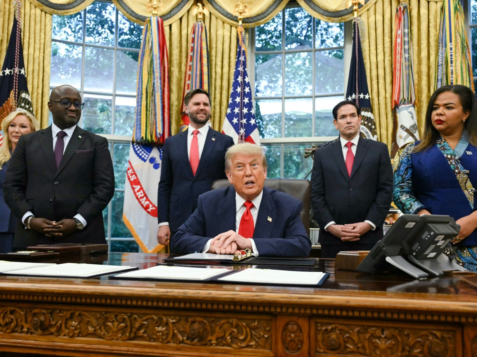 وأضاف ترامب “أنهينا للتو حربا دامت سنوات عديدة وأودت بحياة 6 ملايين شخص”، مؤكدا أن بلاده ستضغط كثيرا على البلدين من أجل تنفيذ اتفاق السلام “وستكون هناك عقوبات كبيرة في حال انتهاك هذا الاتفاق بين رواندا والكونغو الديمقراطية”.