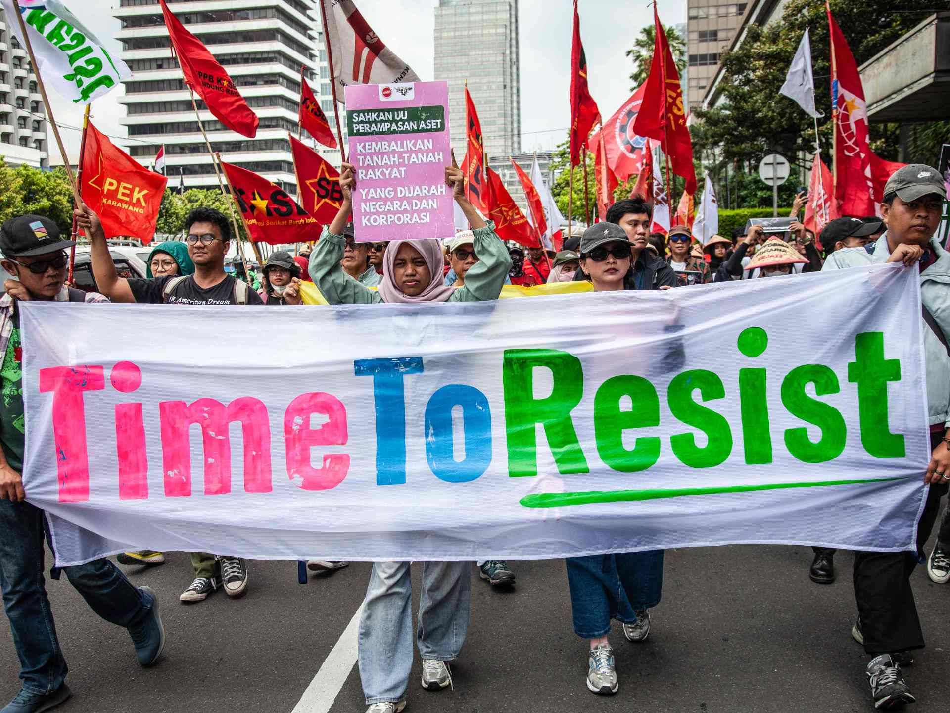 تظاهر مئات الطلاب والعمال اليوم الخميس في العاصمة الإندونيسية جاكرتا لمطالبة الحكومة بإصلاحات سياسية واقتصادية في البلاد، وتنديدا بتدني الأجور مقابل زيادة مخصصات المسؤولين.