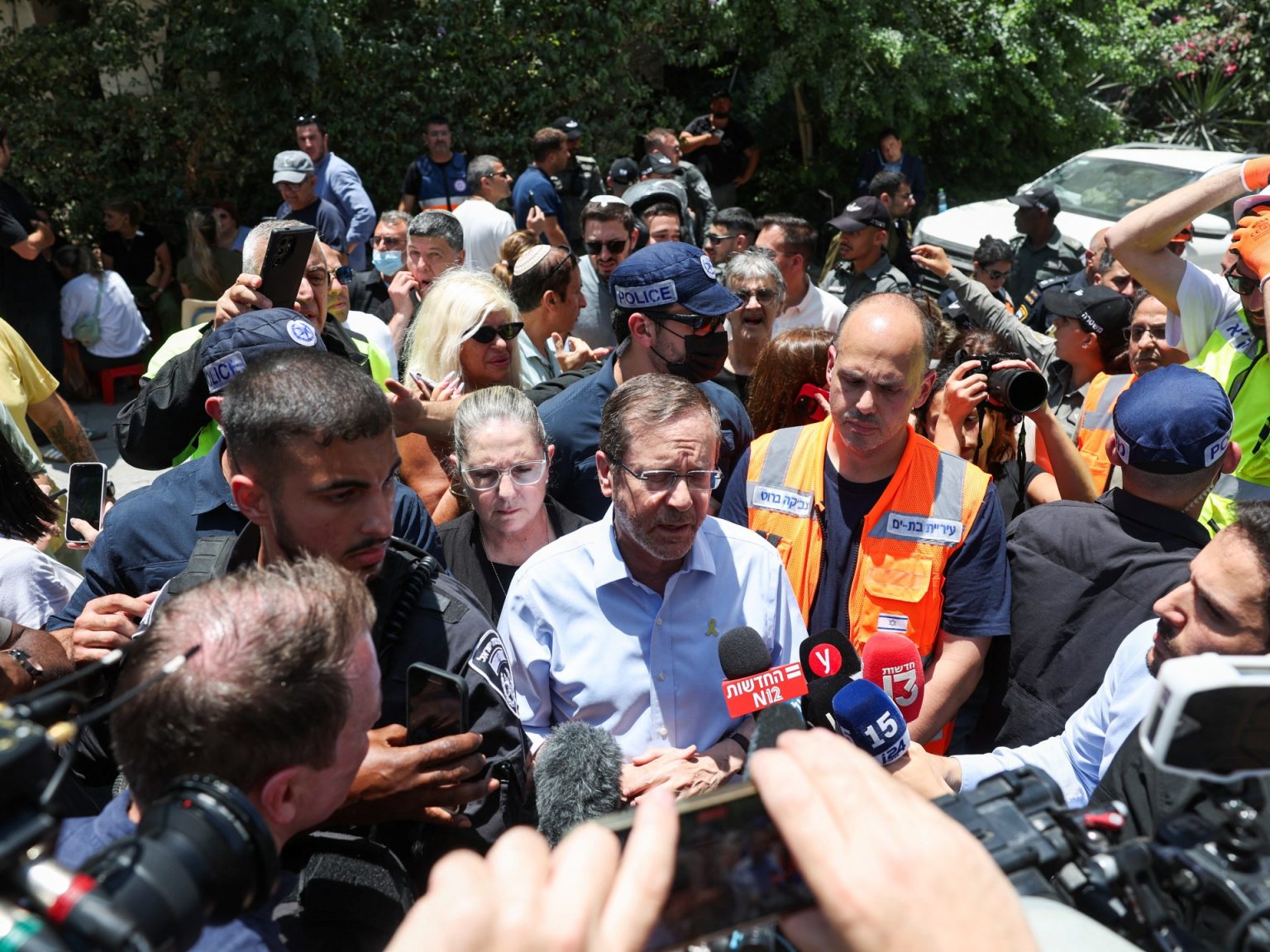 في الوقت نفسه، أفادت وسائل إعلام إسرائيلية أن الرئيس الإسرائيلي إسحاق هرتسوغ ووزيري الدفاع يسرائيل كاتس والأمن القومي إيتمار بن غفير  تفقدوا موقع سقوط الصواريخ الإيرانية في بلدة بات يام جنوبي تل أبيب.