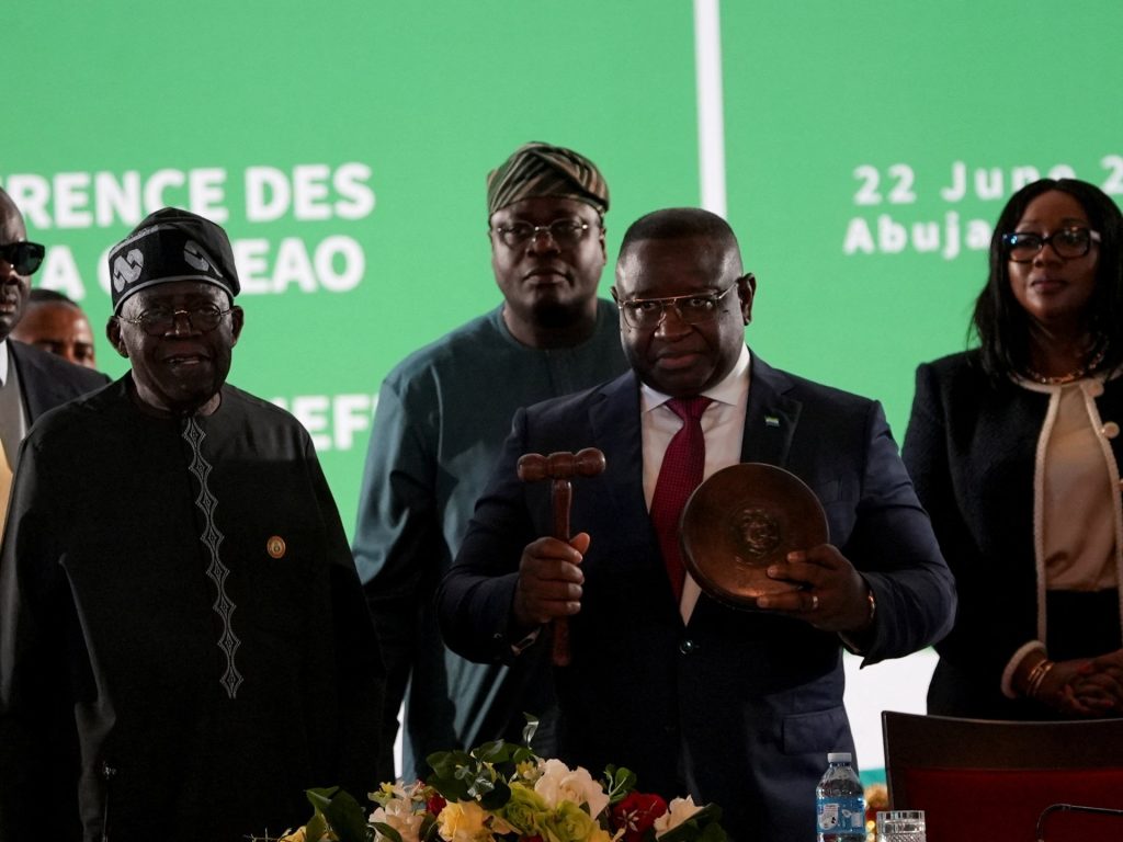 تسلم رئيس سيراليون جوليوس مادا بيو رئاسة المجموعة الاقتصادية لدول غرب أفريقيا (إيكواس)، خلفا للرئيس النيجيري بولا أحمد تينوبو، وذلك خلال قمة عقدت في العاصمة النيجيرية أبوجا، في وقت تواجه فيه المنطقة تصاعد التهديدات الأمنية وتوترات سياسية متزايدة.
