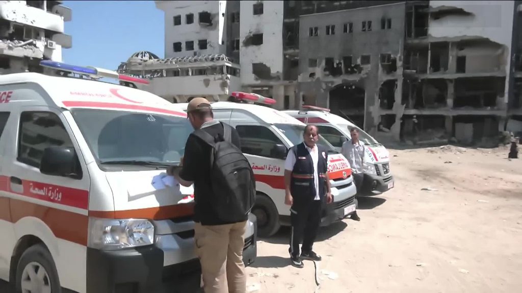 أطلقت سيارات الإسعاف صفاراتها بشكل موحد في قطاع غزة، كنداء استغاثة وتحذير من تفاقم المجاعة وتدهور الوضع الصحي.