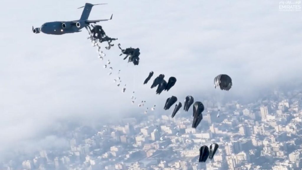شاهد: الإمارات ومصر تنفذان عملية الإنزال الجوي الـ 24 للمساعدات الإنسانية في شمال غزة – خبر