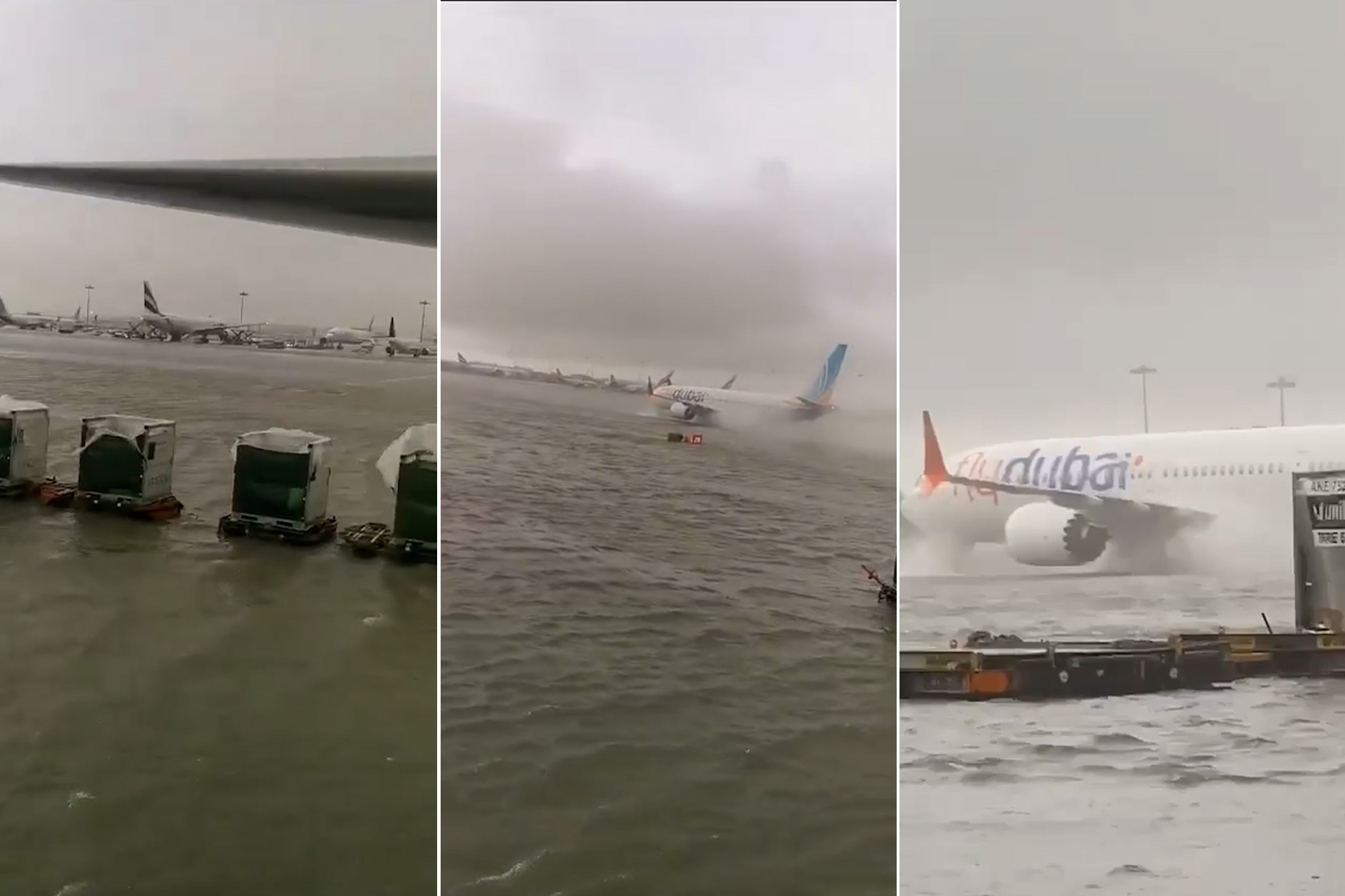 أظهرت مقاطع فيديو -متداولة على منصات التواصل الاجتماعي- طائرة ركاب تهبط في مطار دبي وسط سيول تغمر المدرج جراء المنخفض الجوي الذي تشهده المنطقة.