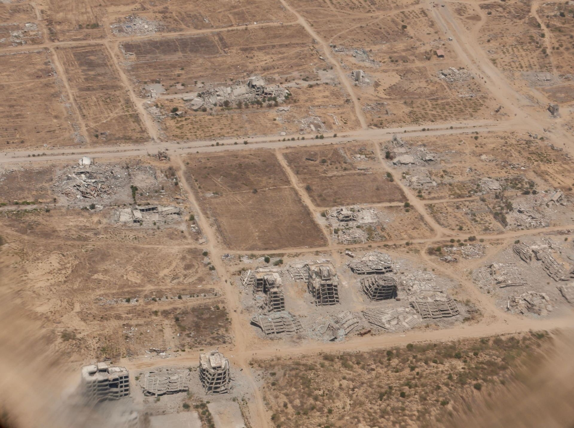 أظهرت صور جوية حديثة دمارا واسعا عمّ مناطق متفرقة من قطاع غزة، بعد أشهر من القصف المكثف. وتُظهر المشاهد التي التُقطت من طائرات تحلق على ارتفاعات متوسطة حجم الأضرار التي لحقت بالبنية التحتية، واختفاء الأحياء السكنية، وتحولها إلى أنقاض ممتدة من دون فواصل واضحة بين الأبنية والطرقات.