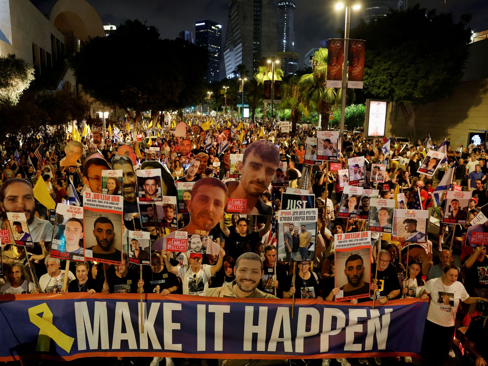 وظلت عائلات الأسرى الإسرائيليين بغزة تنفذ فعاليات احتجاجية عديدة للضغط على حكومة بنيامين نتنياهو من أجل التوصل إلى اتفاق مع حركة المقاومة الإسلامية (حماس).