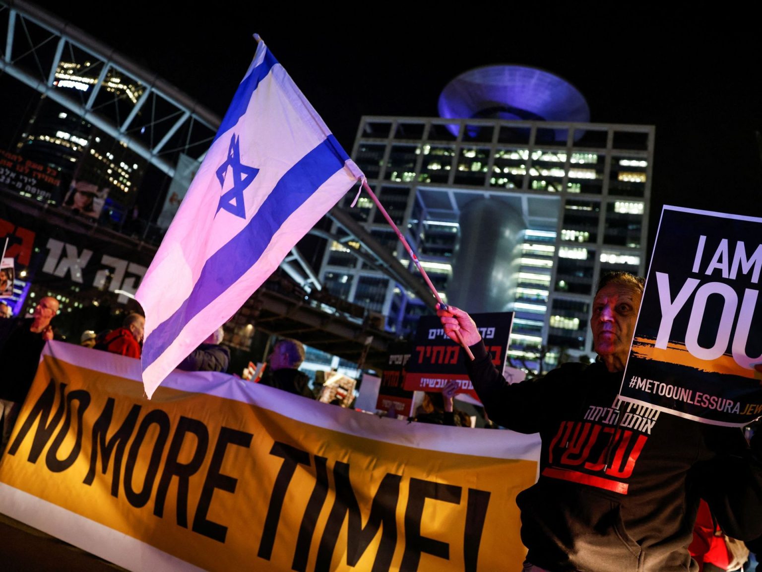 تظاهر آلاف الإسرائيليين وسط مدينة تل أبيب للضغط على الحكومة، لإنجاز صفقة تبادل تلبية لدعوات من عائلات الأسرى الإسرائيليين المحتجزين في قطاع غزة.