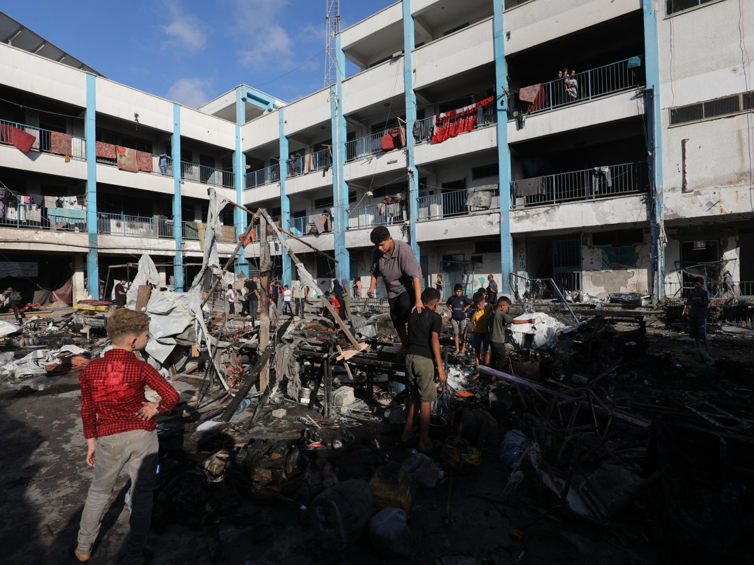 وأصيب مدنيون في قصف إسرائيلي استهدف مدرسة أبو حلو الشرقية التي تؤوي نازحين في مخيم البريج.